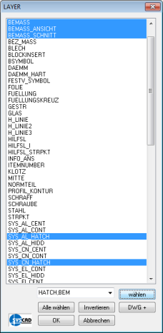 Die Layer werden nach den eingegeben Stichworten ausgewählt. Stichworte können durch ein Semikolon getrennt werden. Die Einstellungen werden gespeichert.