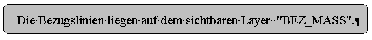 Für jeden Abriß wird eine Bezugslinie auf dem Layer "BEZ_MASS" erstellt und die Differenz "tatsächliche/wahre" Länge als Wert zugeordnet. Die Bezugslinie auf dem Layer BEZ_MASS wird nur für Programmabläufe benötigt und sollte beim Plotten unsichtbar sein. Wenn Sie den Befehl Plot über Tablett oder Pulldown anwählen, wird der Layer automatisch ausgeschaltet. Die Information über den Abriß bleibt auch nach Verlassen von AutoCAD/BricsCAD in der Zeichnung gespeichert.