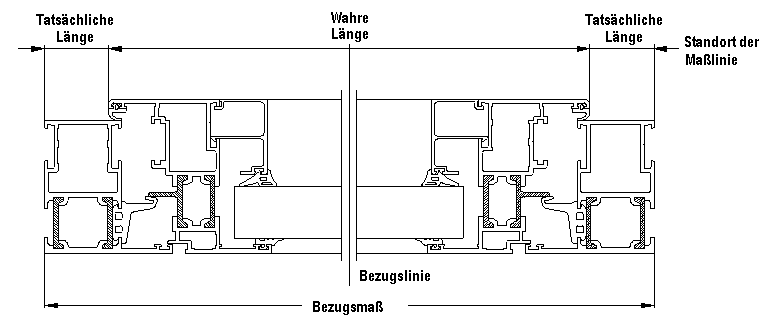 Sind in der Schnittdarstellung z.B. zwei Abrisse definiert und das Gesamtmaß über beide Abrisse soll geändert werden, ist jeweils für Bezugsmaß 1 und Bezugsmaß 2 das neue Maß einzugeben. Falls Sie Bezugsmaße strecken, müssen Sie mit Maß ändern die Bezugsmaße nachrechnen lassen. Ansonsten werden beim weiteren Vermaßen mit Bezugsmaß Fehler auftreten. Siehe auch Beispiel Bezugsmaß im Kapitel 11. Vermaß: Ermöglicht Ihnen, eine von Hand erstellte Schnittdarstellung komplett zu vermaßen oder vom Programm generierte Schnitte zu ergänzen. OFANG <Endpunkt> als Vorgabe. Werden Bezugslinien durch die Punktbestimmung der Maßhilfslinie gekreuzt, wird die wahre Länge unter Berücksichtigung des Bezugsmaßes ermittelt. Wird bei der Vermaßung die Bezugslinie nicht gekreuzt, wird die tatsächliche Länge angegeben. Exit: Programm verlassen: Vorgabe <EXIT> mit