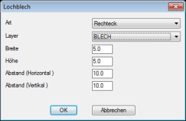 Zeichnen Sie das gewünschte Blech mit der richtigen Materialstärke. In diesem Beispiel 0.5mm Befehl: Blech wählen: Klicken Sie auf Ihr Blech
