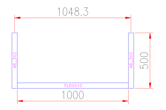 Die Stückliste ermittelt für das untere Flacheisen eine Länge von 1048.3mm. D.H. die gezeichnete Länge von 1000mm plus dem beidseitigen maximalen Einstand des Rohres von 24.15mm. Dieser Sicherheitszuschlag wäre bei einem liegendem Flacheisen ja sinnvoll. Hier können Sie mit der Option "Korrekturmass absolut" das "stehende" Flacheisen richtig rechnen lassen.