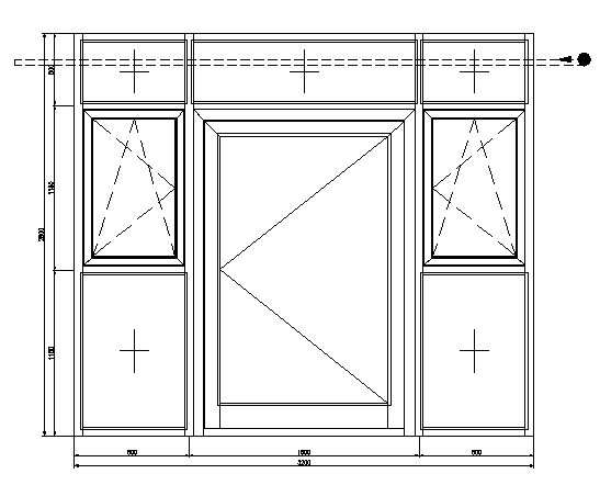 Sie müssen bei Fassaden-Serien im Anschluß an die Füllungen noch die Druck- und Deckprofile definieren. Beispiel: Sie rufen das Programm Druck-Deckprofil auf und wählen alle Riegelprofile mit einem Auswahlfenster von links nach rechts. Fenster - bzw. Einspann-Profile werden vom Programm ignoriert, können sich also ohne weiteres im Auswahlfenster befinden.
