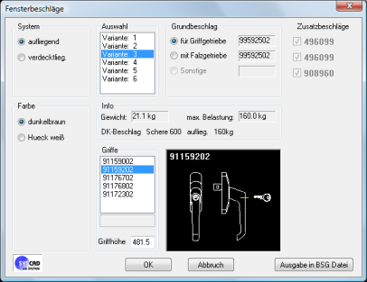 Wählen Sie das gewünschte Flügelprofil, die Öffnungsart und die Glasdicke. Der Flügelrahmen mit Öffnungssymbol und Glaskontur wird in der Ansicht dargestellt. Anschließend erscheint am Bildschirm die Meldung: Ende Füllung < Fenster > Profil < 803200_S > Glasmaß < 26 > Öffnungsart <DKR> 1. Eckpunkt definieren (links unten) oder Punkt in der geschl. Kontur zeigen. Alle Vorgaben werden als Variable gespeichert und gelten für alle nachfolgend gewählten Felder. Für eine weiteres Fenster mit einer anderen Öffnungsart müssen Sie einmal bestätigen. RETURN für Ende Füllung 1. Eckpunkt definieren (links unten) oder Punkt in der geschl. Kontur zeigen. Die Symbole der Öffnungsarten haben folgende Bedeutung: DR-Dreh Rechts DL-Dreh Links KIPP-Kippflügel DKR-Dreh Kipp Rechts DKL-Dreh Kipp Links FEST-Fester Flügel KDR-Kipp Dreh Rechts KDL-Kipp Dreh Links KLAPP-Klappflügel KKR-Kurbel Dreh Kipp Rechts KKL-Kurbel Dreh Kipp Links SCHW.-Schwing-Fenster SKR-Schiebefenster Kipp Griff Rechts SKL -Schiebefenster Kipp Griff Links WENDE-Wendefenster
