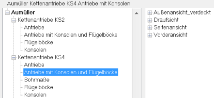 Welche Zeichnungen innerhalb der Antriebsgruppe stehen zur Verfügung?
