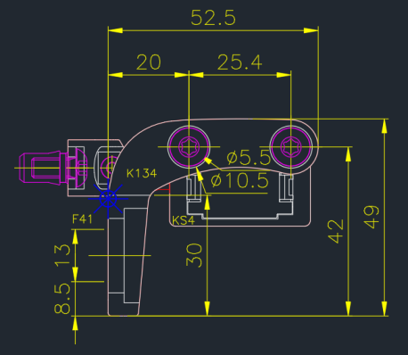 2.Stelle-4.Stelle: Konsole: K134, Flügelbock: F41 und Antriebsname: KS4