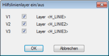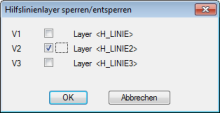 Hilfslinienlayer sperren / entsperren Sperrt wechselweise den Layer H_LINIE oder entsperrt ihn. Sind mehrere Layer definiert und in Verwendung, wird nach dem gewünschten Layer gefragt: