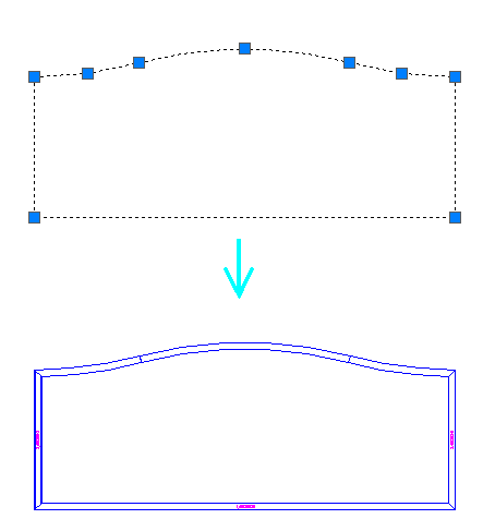 Diese SYSCAD-Profile können als Begrenzung für Festverglasungen, Fenster-Füllungen, Sprossen etc. verwendet werden. SYSCAD erzeugt dabei die Profile mit der Stegseite in Richtung der Polylinie. Diese Richtung kann mit dem Befehl PEDIT / Richtung wechseln vorher geändert werden. Nachträglich drehen geht hier nicht.