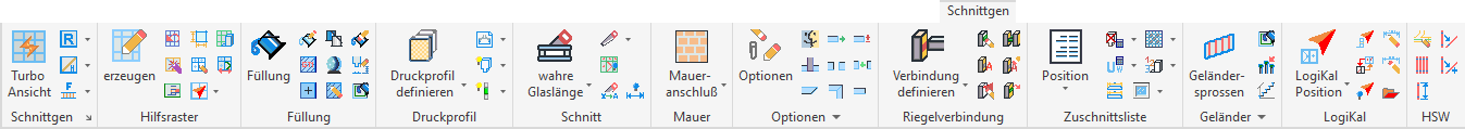 Werkzeugkasten oder Pulldown - Menü: Die Befehle der SCHNITTGENERIERUNG sind in dem gleichnamigen Werkzeugkasten in der Gruppe SYSCAD zu finden. Die Serienauswahl erfolgt über den ProfilSystemDialog beim gewählten Lieferanten.