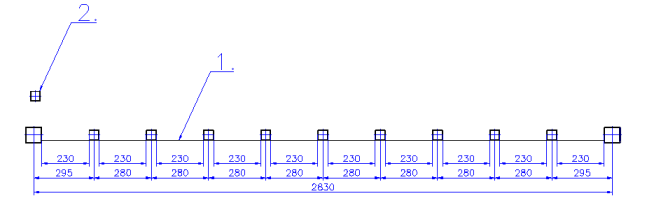 Befehl zum Aufteilen von Blöcken entlang einer Linie. Die Elemente werden nach der Eingabe der Blockbreite mit einem lichten Maß möglichst nahe dem gewählten Abstand eingefügt. Befehl: Objekte wählen oder Return für Punkteingabe: Klicken Sie auf die Linie (1.)