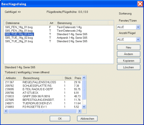 •Mit dem neuen Programm "Sonderbeschlag" kann man eigene Beschläge und Garnituren definieren.