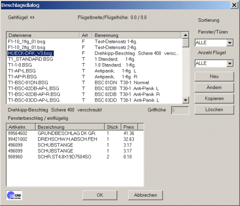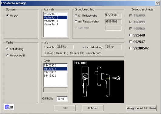 Im Programm "USER-Beschlag" bearbeiten Sie anschließend diesen Basis-Typ oder speichern ihn als geänderte Variante.